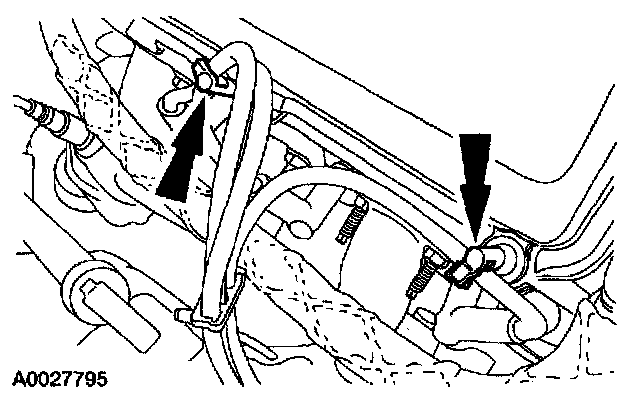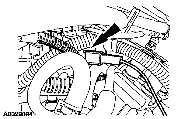 7. Remove the Positive Crankcase Ventilation (PCV) valve/heater water hose assembly and position out of the way.