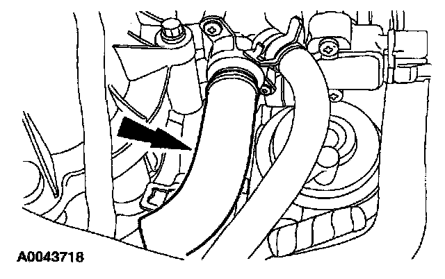 4. Install the Positive Crankcase Ventilation (PCV) valve heater water hose assembly.
