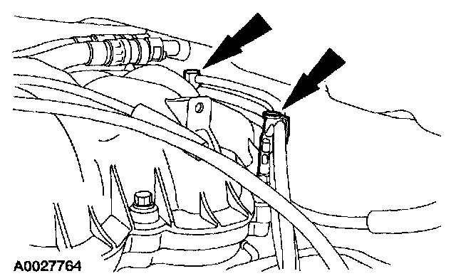 8. Disconnect the accelerator cable and speed control actuator cable, if equipped, from the cable bracket.