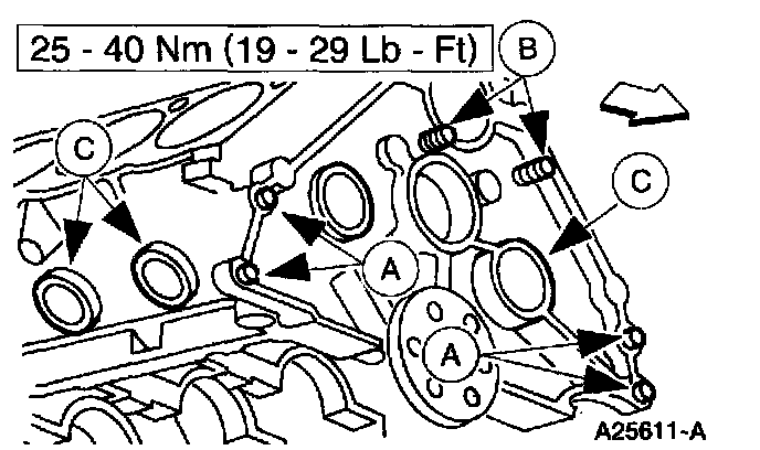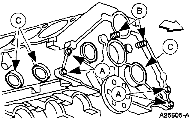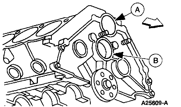 5. Install the (A) engine dynamic balance shaft bearing cover and the (B) camshaft bearing cover.