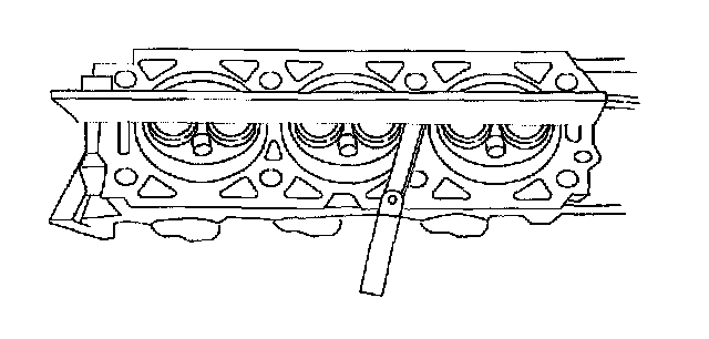 Use a straight edge and a feeler gauge to inspect the cylinder head for flatness. If the cylinder head is distorted, install a new cylinder head.