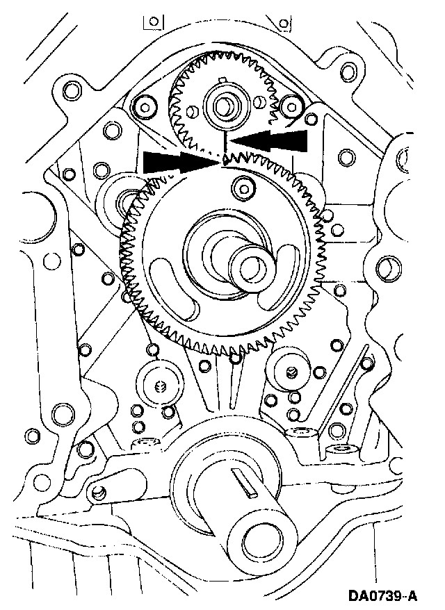 - The timing marks on the drive and driven gear must align.