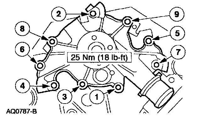 1. To install, reverse the removal procedure. Tighten the stud bolts, bolts, and nuts in the sequence shown.