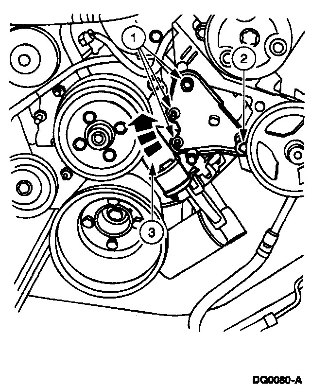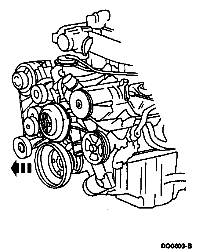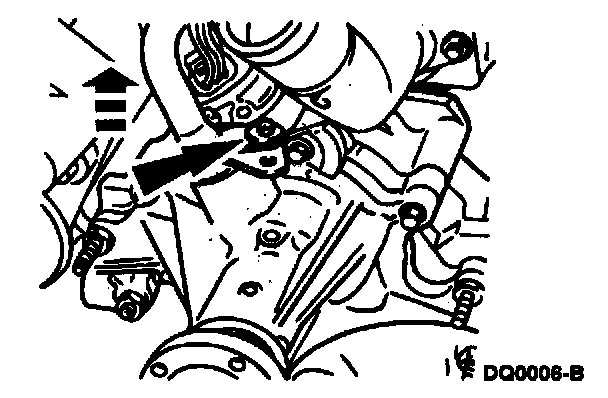 12. Remove the (A) bolts and the (B) stud bolts from the (C) water pump. Remove the water pump from the (D) front cover.