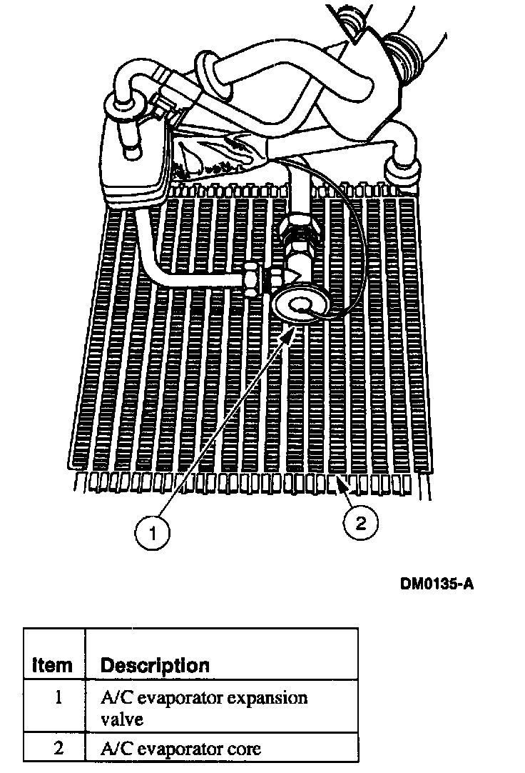 An A/C evaporator expansion valve regulates the flow of refrigerant into the auxiliary A/C evaporator core. It is also the dividing point in the system between low- and high-pressure sides.
