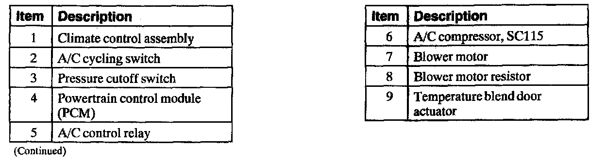 Climate Control System Electrical Components