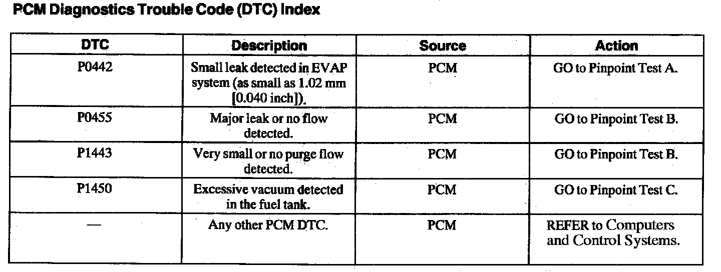 DTC Index P0442 - P1450: