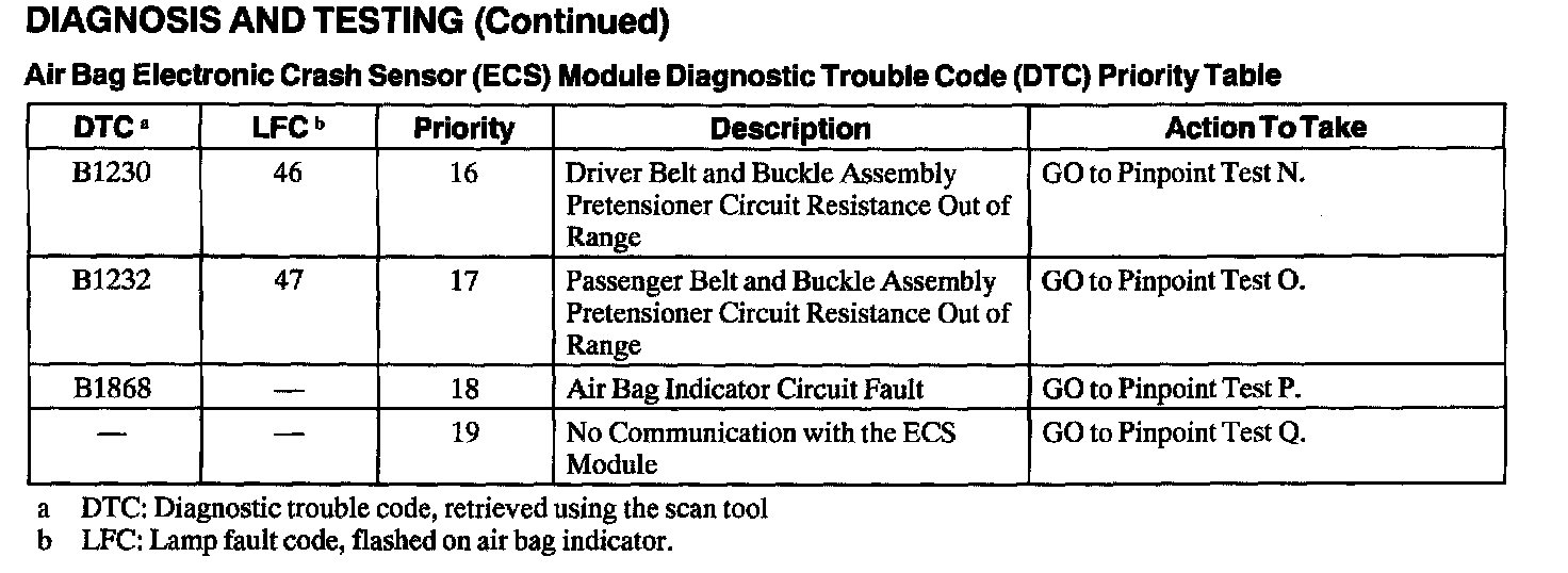 DTC Priority Table B1230 - B1868: