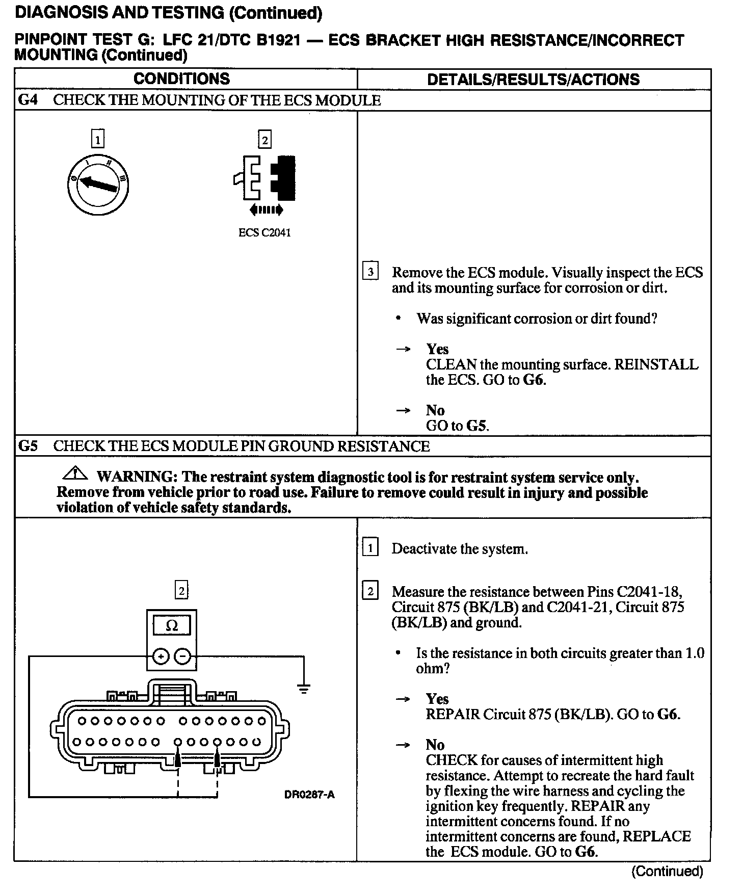 ^ poor reference ground at Pins C2041-18 and C2041-21, Circuit 875 (BK/LB) of the ECS.
