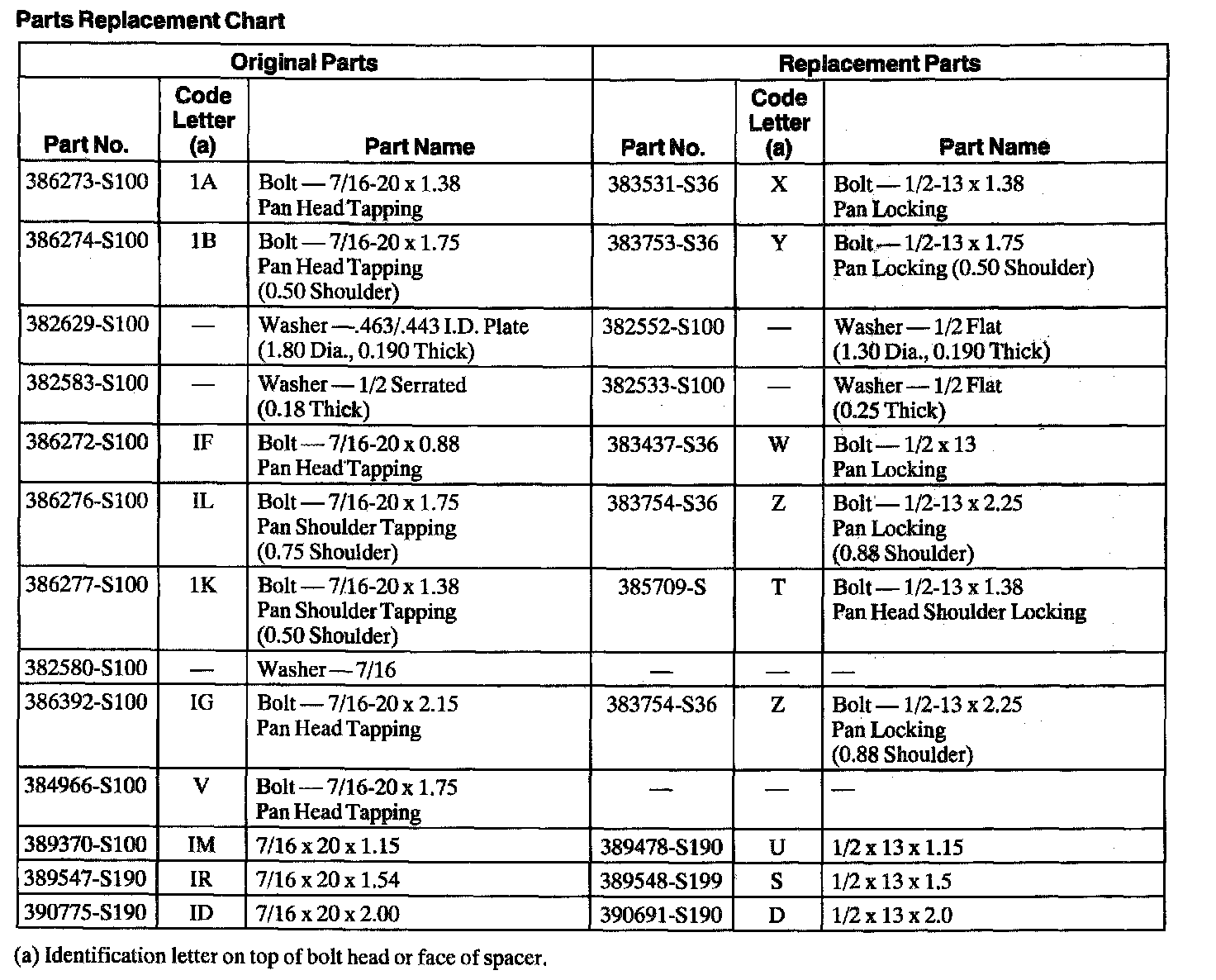 Parts Replacement Chart