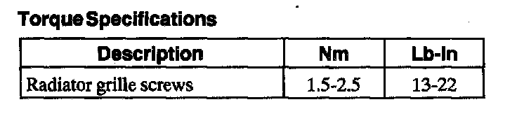 Torque Specifications: