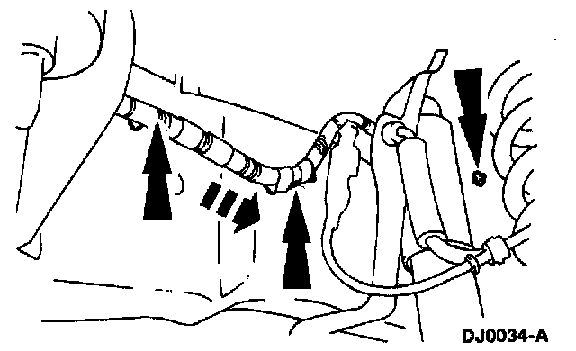 4. Remove three rear harness locators, two to the rear of the vacuum reservoir and one to the front of the vacuum reservoir, along the RH frame rail.