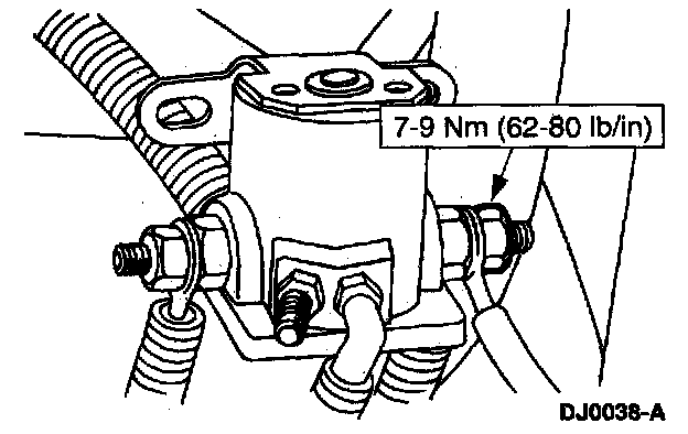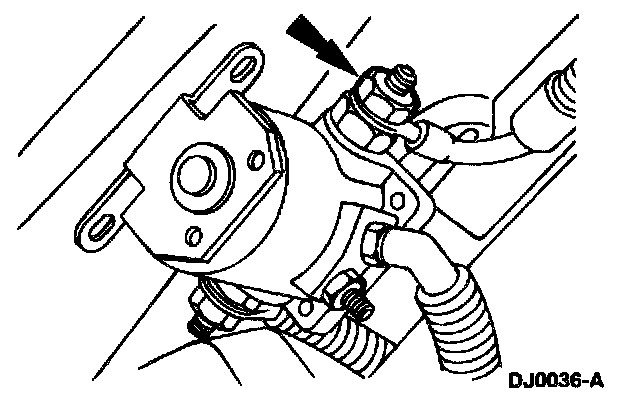 8. Remove the nut and disengage the harness eyelet.