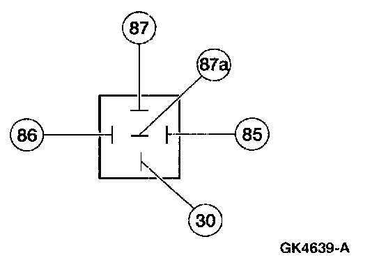 Using 73 Digital Multimeter, check for the continuity between Terminal 85 and all other terminals. If the resistance is 5 ohms or less between Terminal 85 and any other terminal, install a new relay. If the resistance is greater than 5 ohms, continue with the test. Using two jumper wires, connect relay Terminals 86 and 30 directly to the positive battery terminal. Using 73 Digital Multimeter set in the volts position, check for voltage at Terminal 87A. If battery voltage is not indicated, install a new relay. If battery voltage is indicated, connect a third jumper wire to Terminal 85 and ground the jumper wire to a known good ground. Check for voltage at Terminal 87. If battery voltage is not indicated, install a new relay.