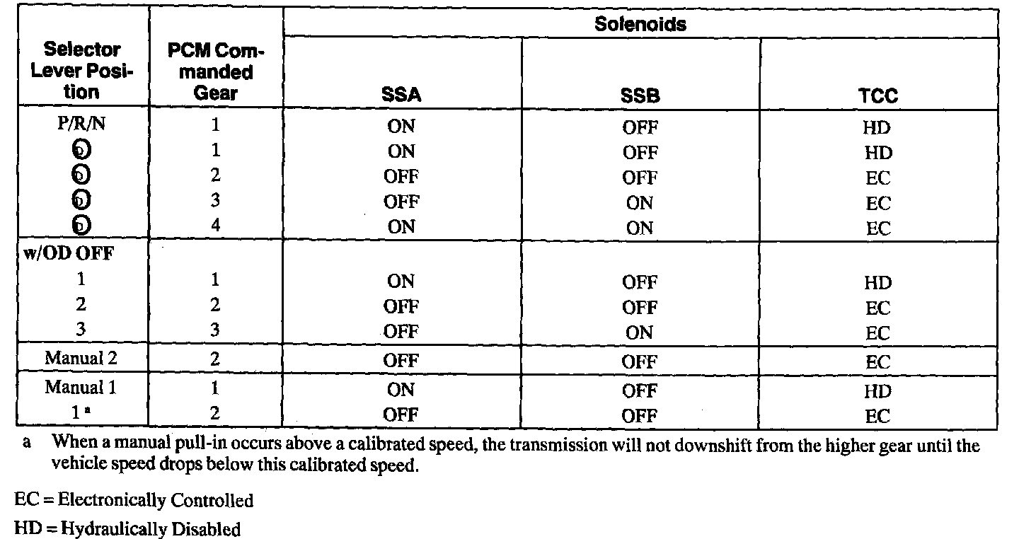 Using all of these input signals, the PCM can determine when the time and conditions are right for a shift, or when to apply or release the Torque Converter Clutch (TCC). It will also determine the best line pressure needed to optimize shift feel. To accomplish this, the PCM uses hydraulic solenoids to control transmission operation.