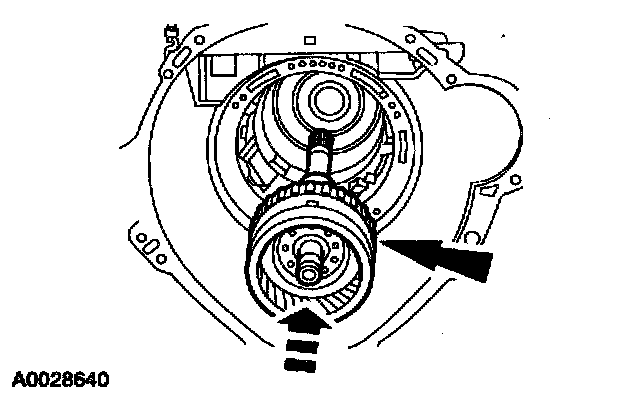 2 Maintaining downward pressure, use a depth micrometer to measure and verify intermediate clutch clearance is within specification.