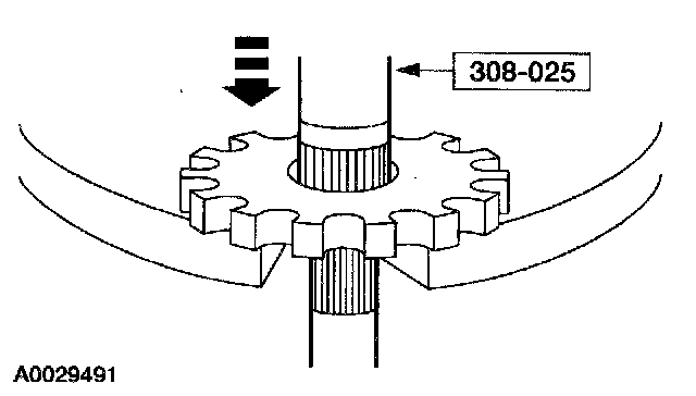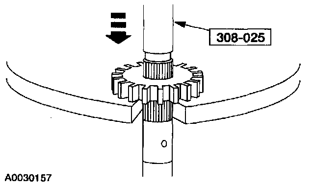 If removed, use the arbor press and the special tool to install the park gear, press the park gear onto the output shaft until it stops at the shoulder on the output shaft.
