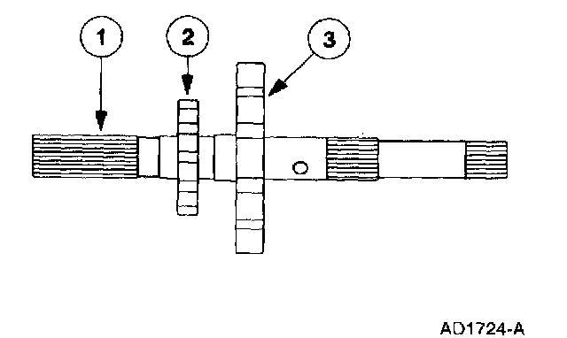 3. Check the splines on the output shaft for wear. Install a new output shaft if the splines are excessively worn. Inspect all the bushings for wear. Install new if worn or damaged.