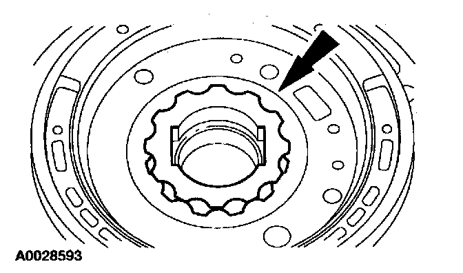 2 Push the intermediate clutch piston to the bottom of the pump body bore, exerting even pressure and remove the special tool.