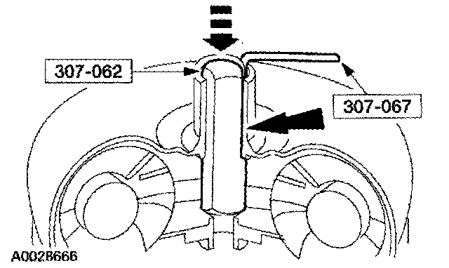 1. Install the special tool in one of the grooves in the stator thrust washer.