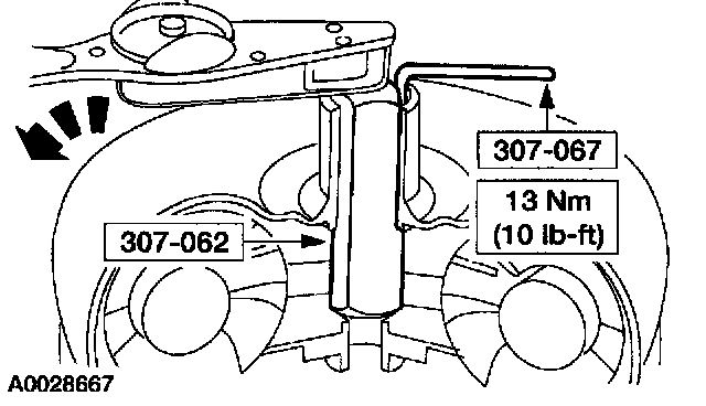 3. Use a torque wrench to turn the special tool counterclockwise while holding the special tool stationary.