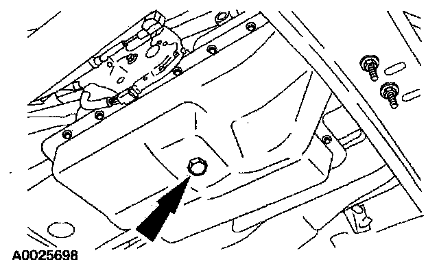 3 Lower the front of the fluid pan and allow the fluid to drain.