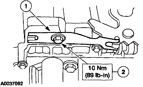 1. NOTE: Make sure that the drive pin of the manual valve detent lever assembly engages the manual valve in the correct location prior to installing the bolts.