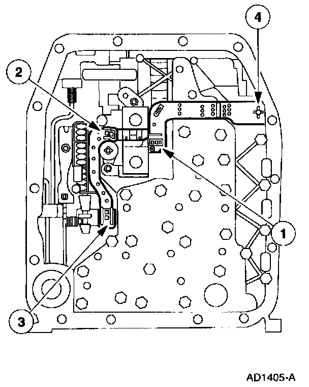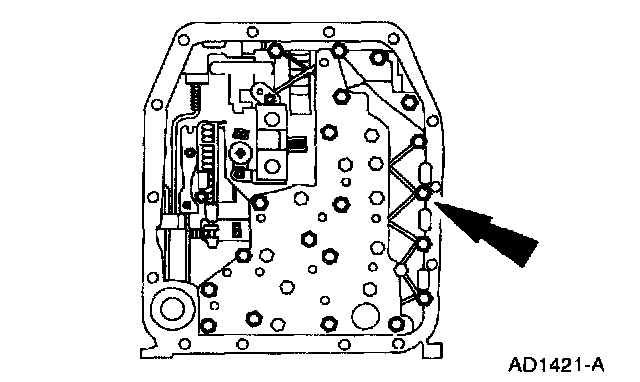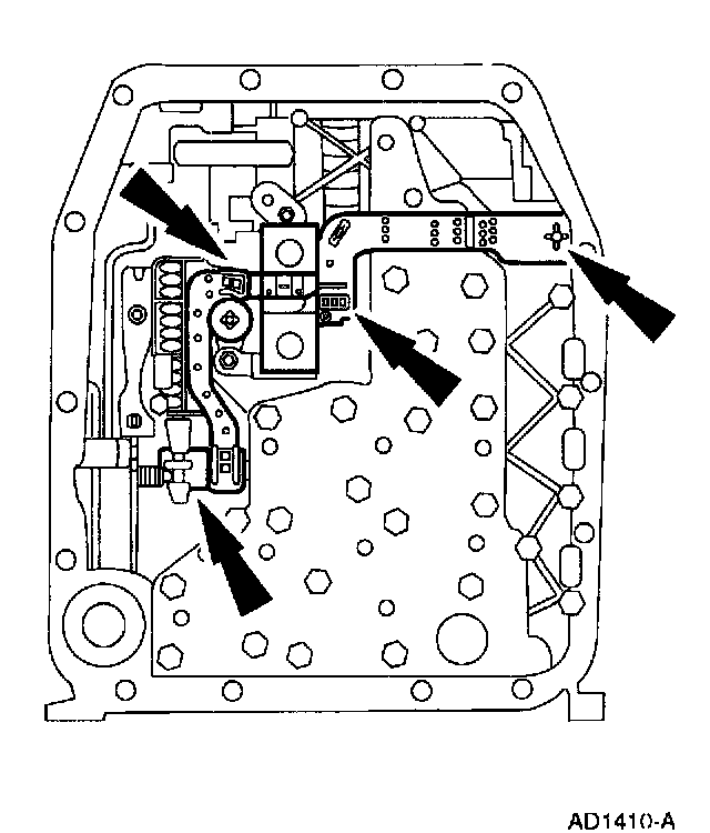 1. Drain transmission fluid and remove the transmission fluid pan and filter.