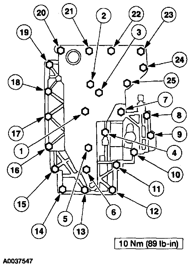5. Tighten the main control valve body bolts in the sequence shown.