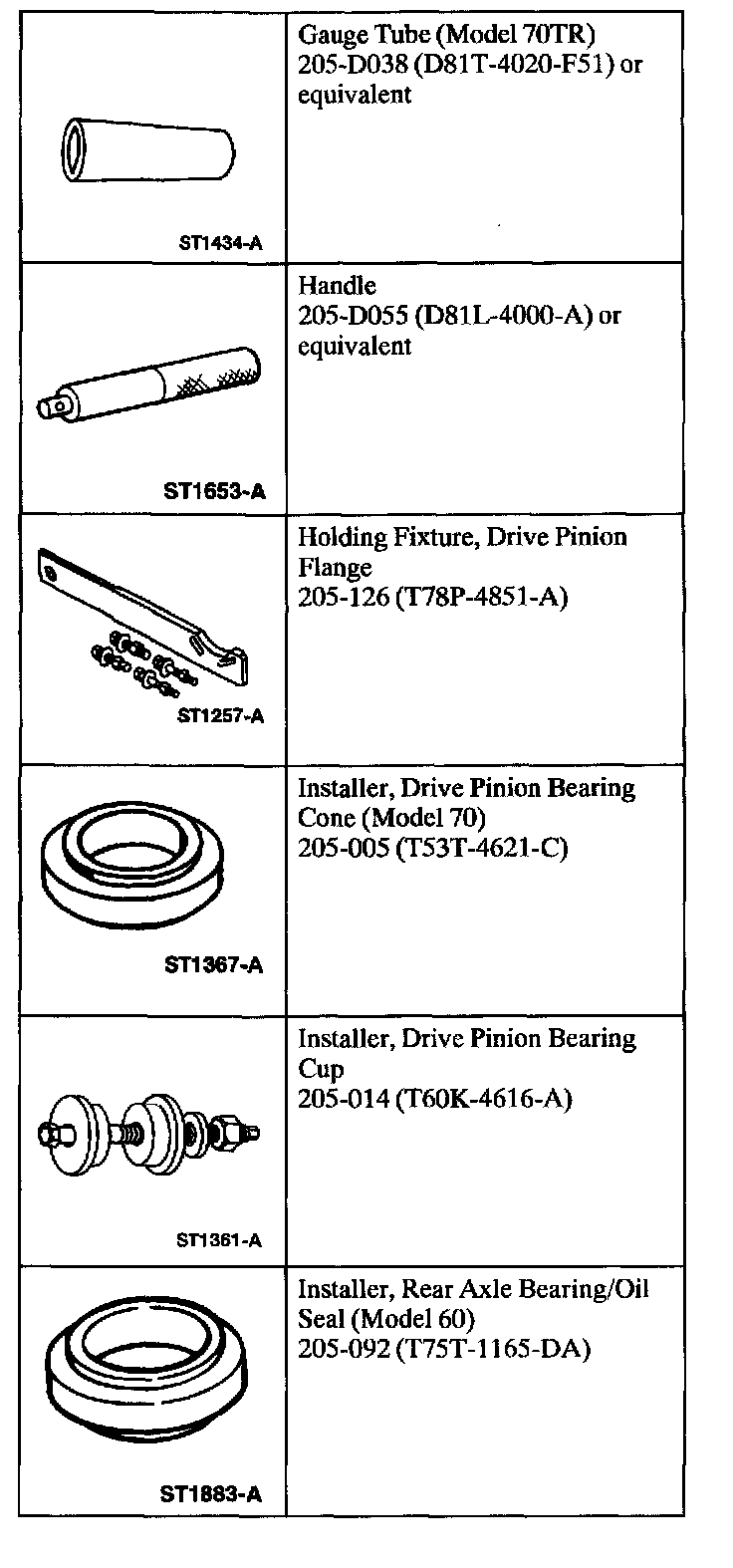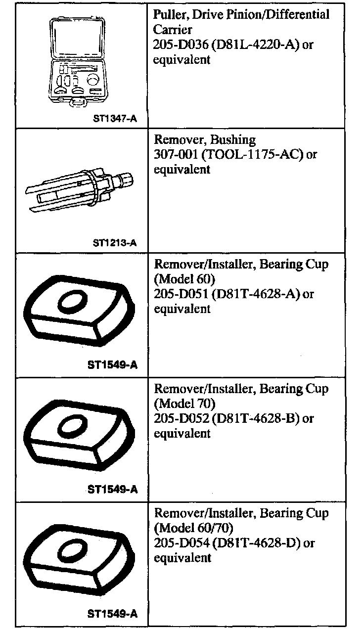 - For Model 60/70 axles, use tools 205-DO54 and 205-DO55.