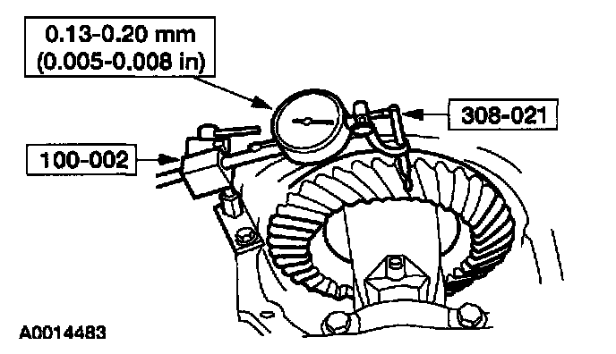 3. CAUTION: The differential ring gear and pinion must be clean and dry to obtain an accurate reading.