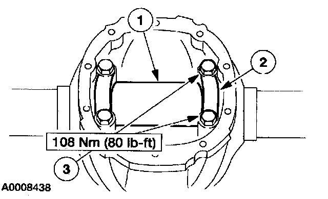 36. Place two bolts into the differential housing cover at the 8 o'clock and 2 o'clock positions. Install the differential housing cover.