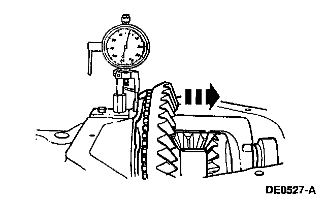 Force the differential case as far as possible toward the indicator. With force still applied, set the indicator at 0.