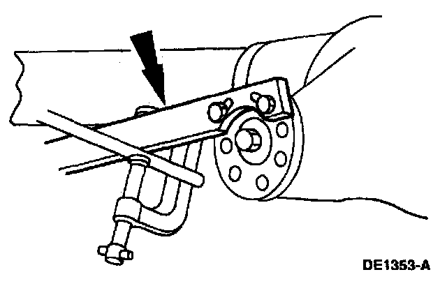 - Clamp a rigid bar or pipe to the tool. Clamp the other end of the bar or pipe to the frame or a body member in order to prevent movement of the rear axle pinion flange.