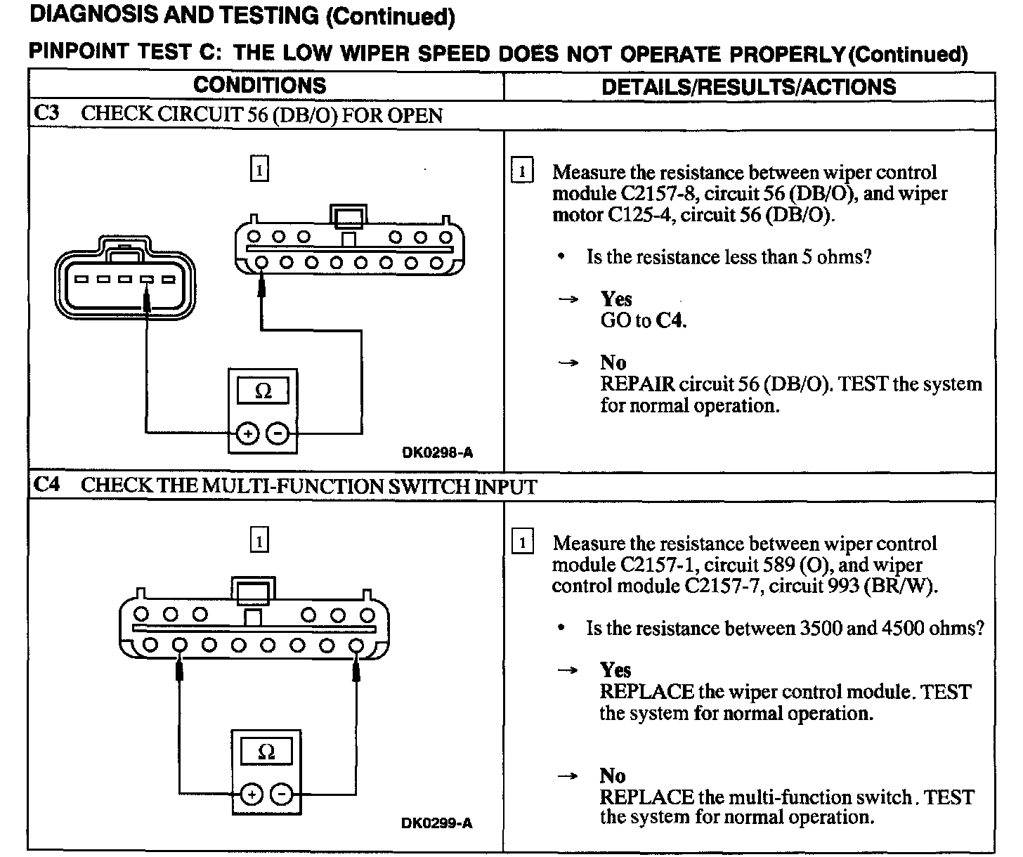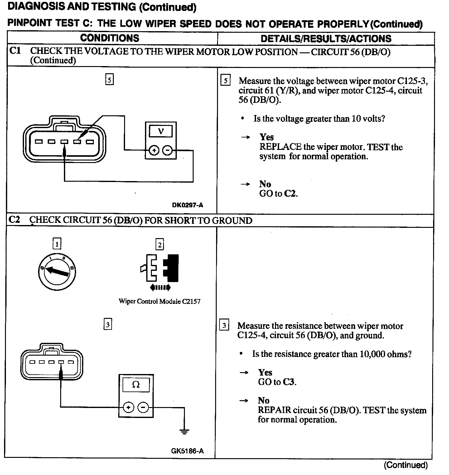 Test C: Low Wiper Speed Does Not Operate Properly