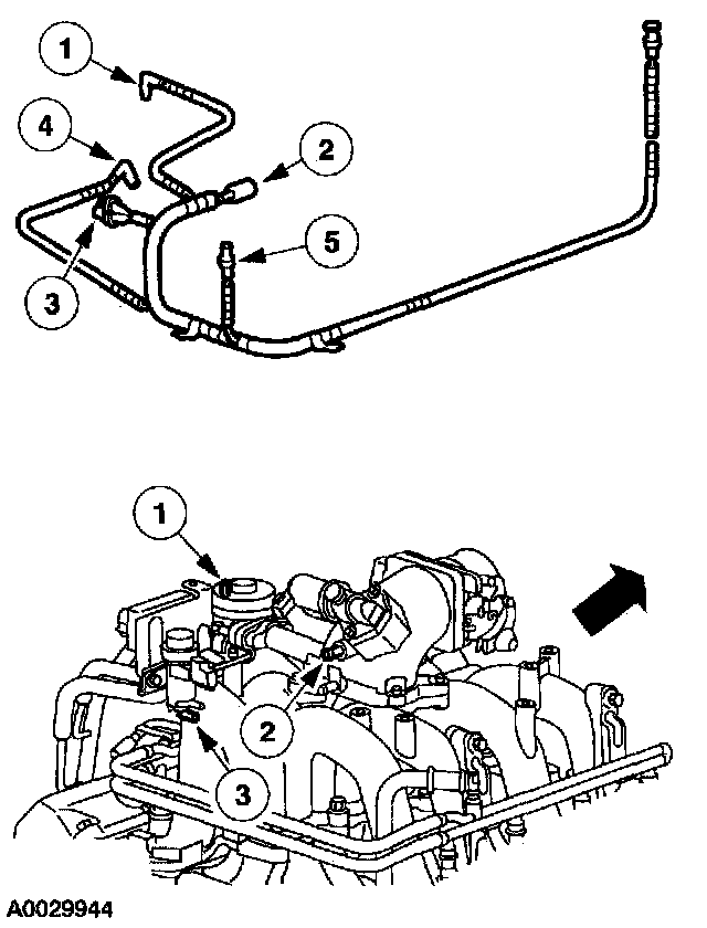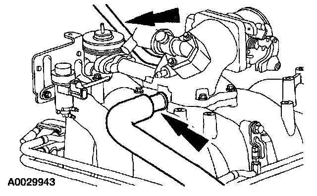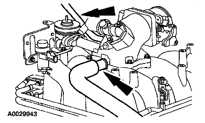 ^ Remove the system and hoses from the exhaust manifold to EGR valve tube.
