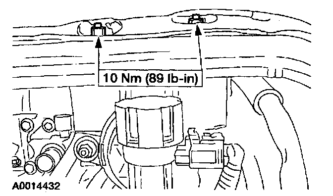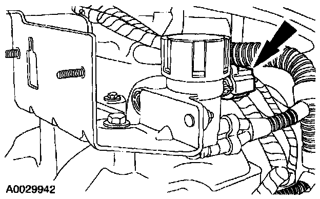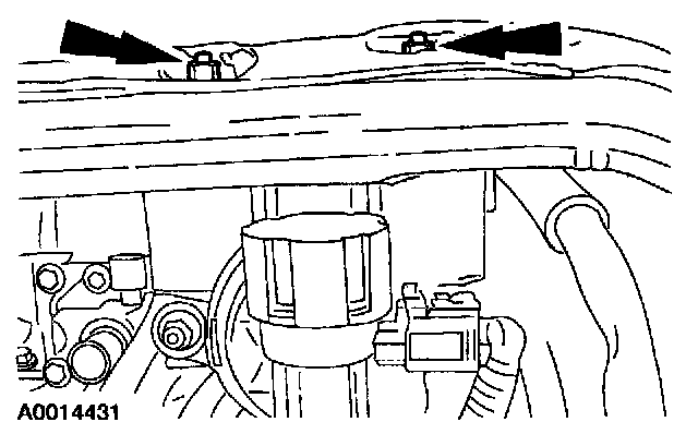 17. Remove the two evaporative emission canister purge valve nuts and position the valve aside.
