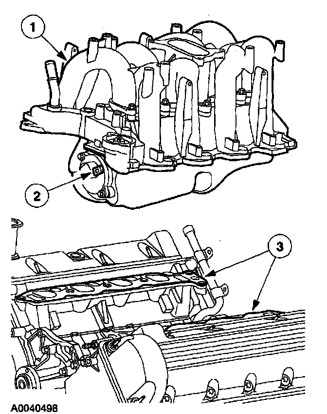5. NOTE: The thermostat housing bolts are tightened in sequence with the intake manifold bolts.