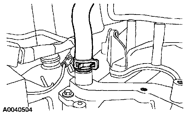9. Compress and slide the hose clamp and disconnect the upper radiator hose.