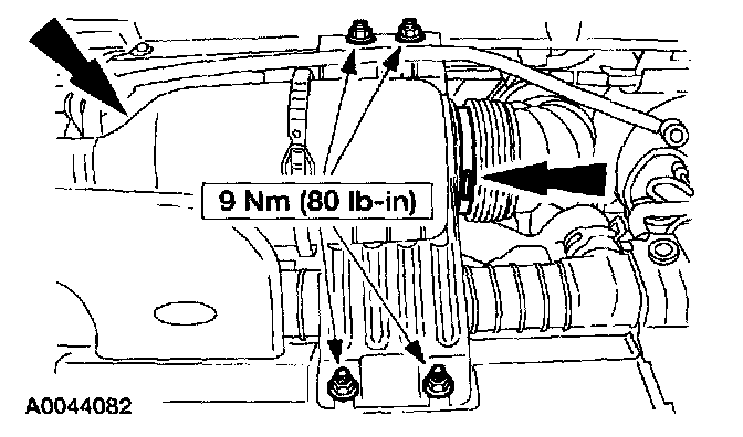 12. Position a new throttle body adapter gasket and install the throttle body adapter assembly.