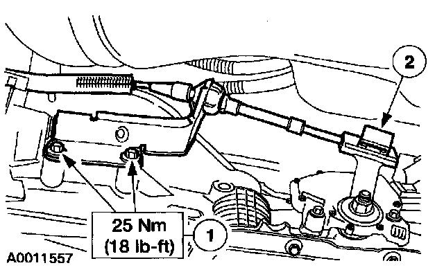 Position the shifter cable support bracket and install the two transmission-to-engine bolts.