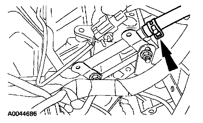 18. Position the transmission fluid cooler tube support bracket and install the nut.