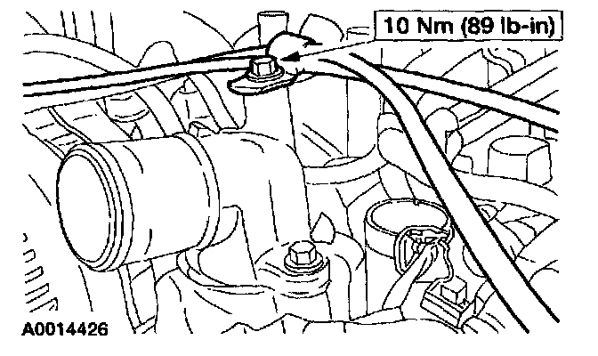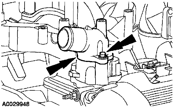 Loosely install the thermostat housing and bolts.