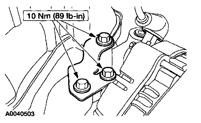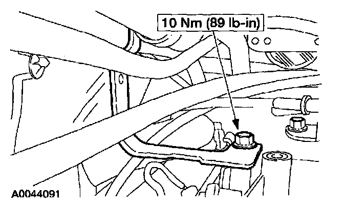 25. Install the transmission fluid filler tube bracket and bolt.