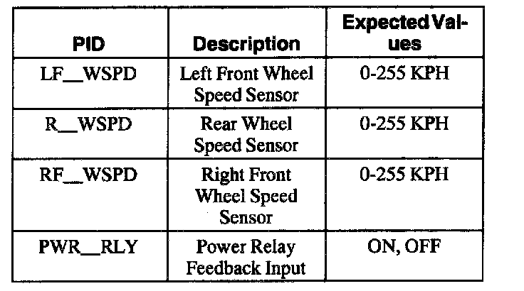ABS Control Module Parameter Identification (PID) Index