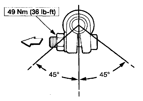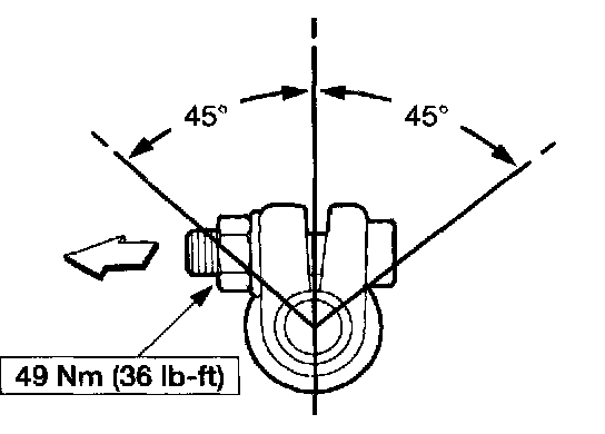 7. Position the LH adjusting sleeve clamp opening upward within 45 degrees of vertical. Tighten the nuts.