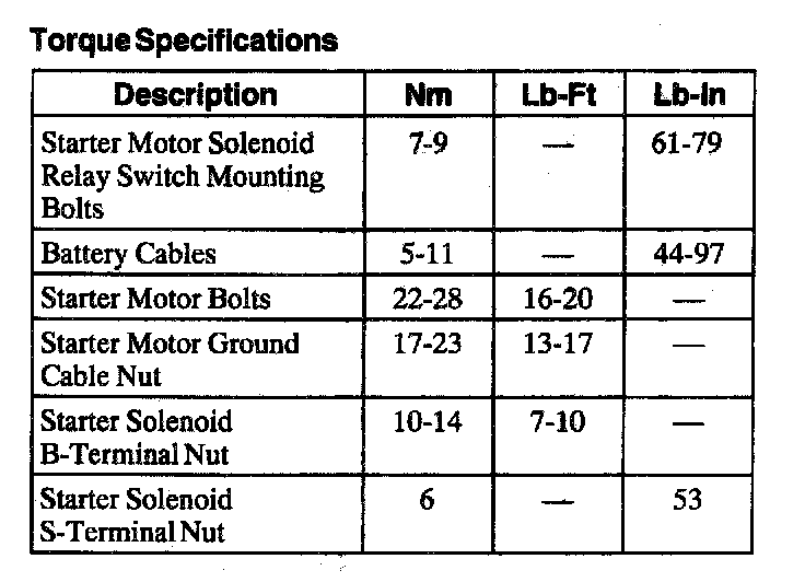 Torque Specifications: