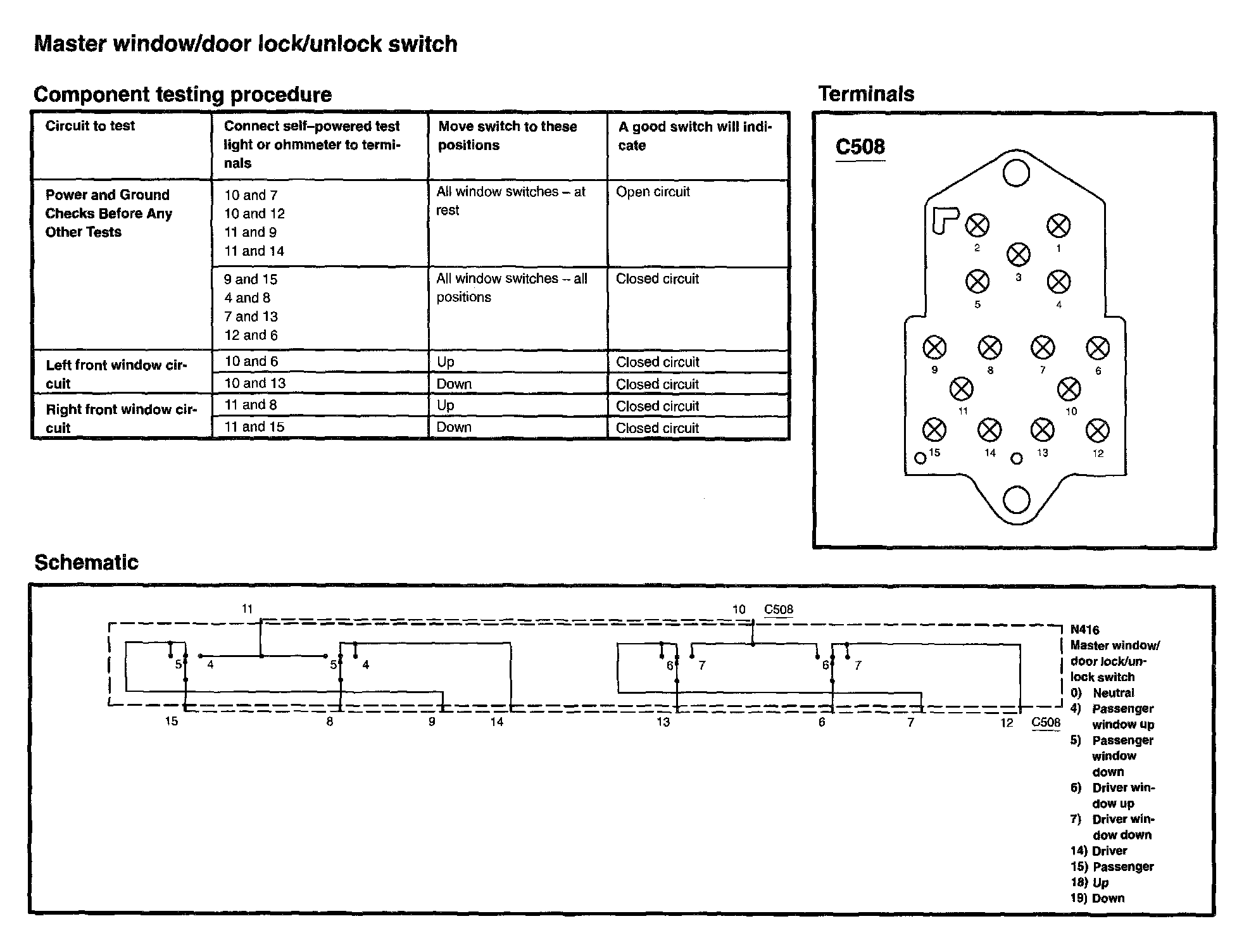 Power Window Switch: Testing and Inspection
