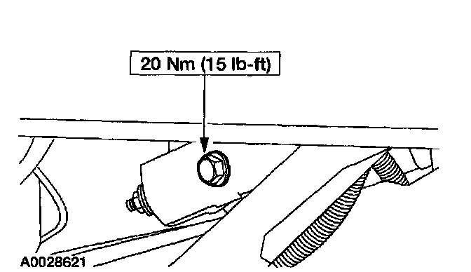 NOTE: Access the compressor manifold and tube assembly bolt from the RH front fender well, between the frame and body.