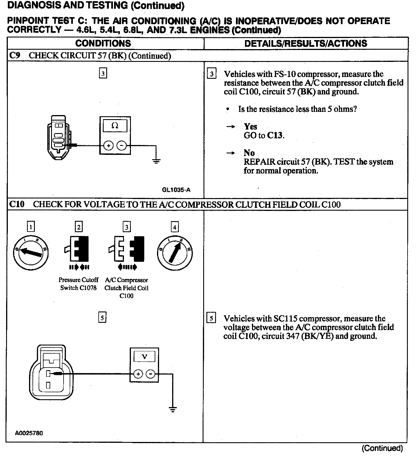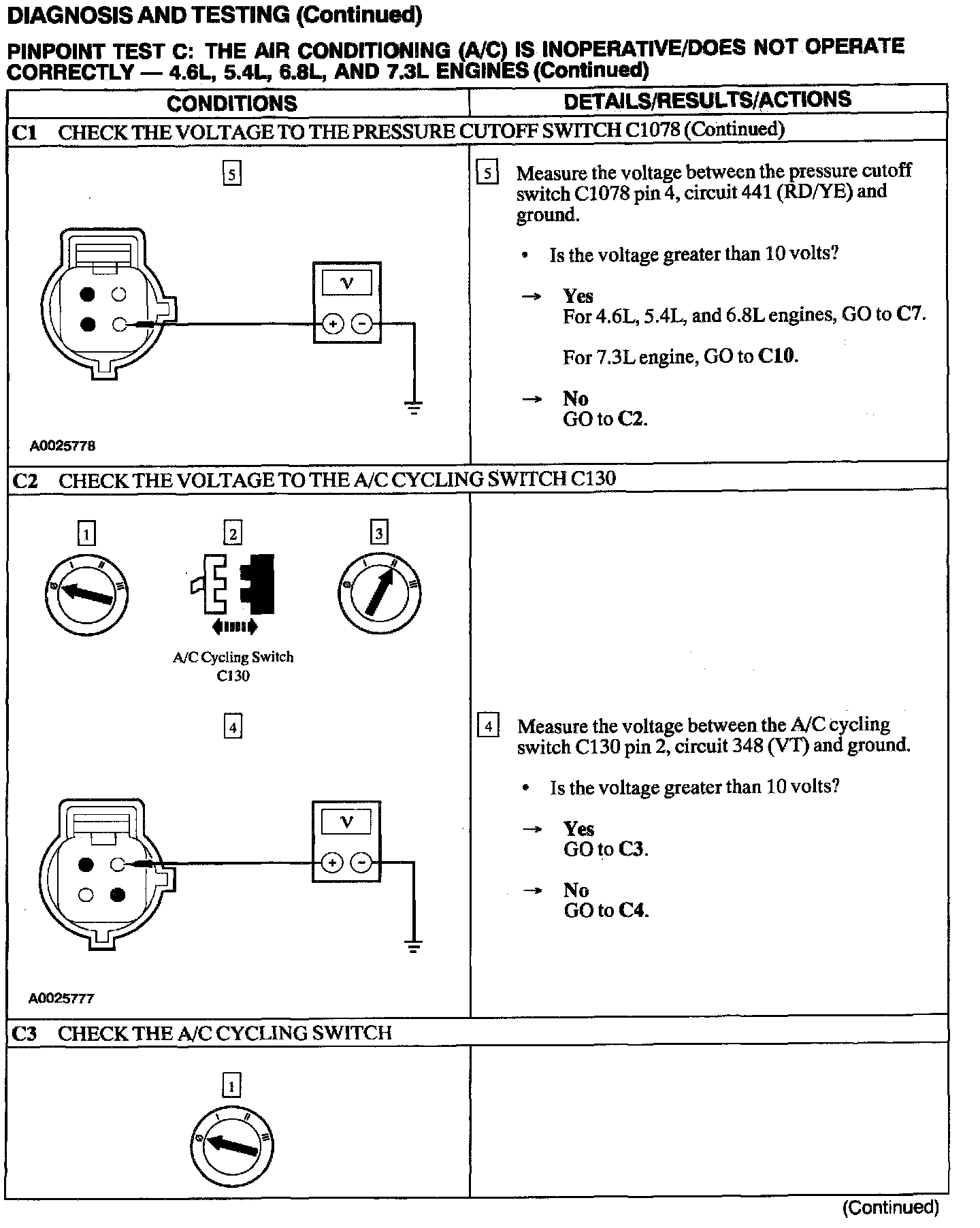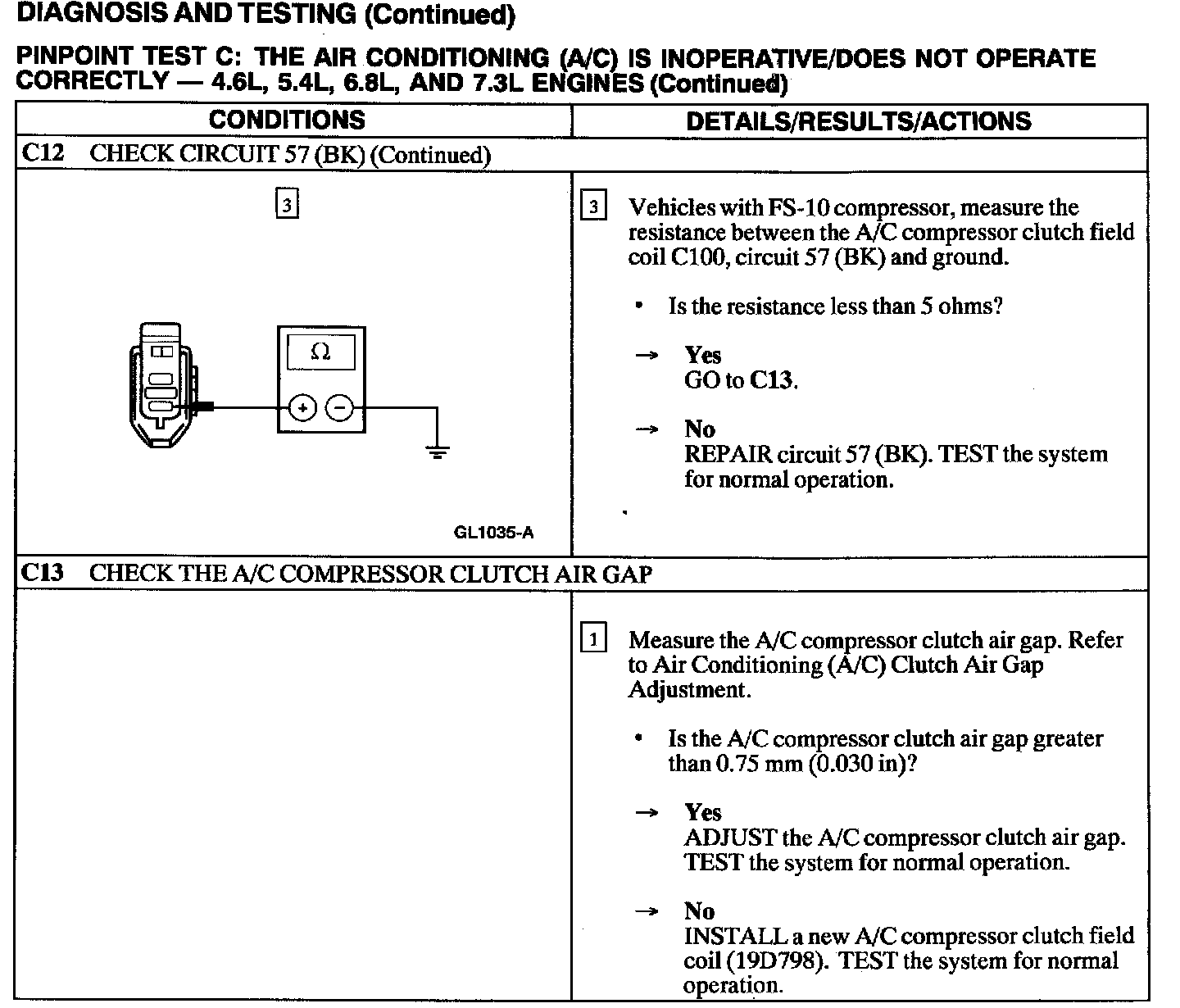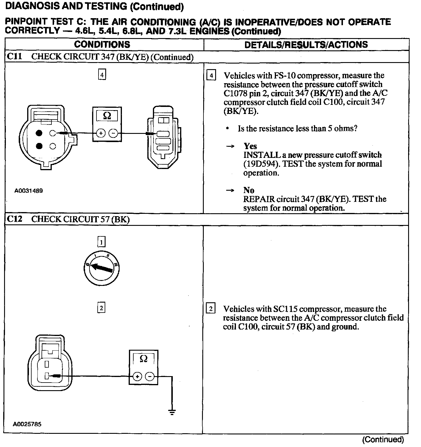 Test C: A/C Is Inoperative/Does Not Operate Correctly